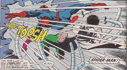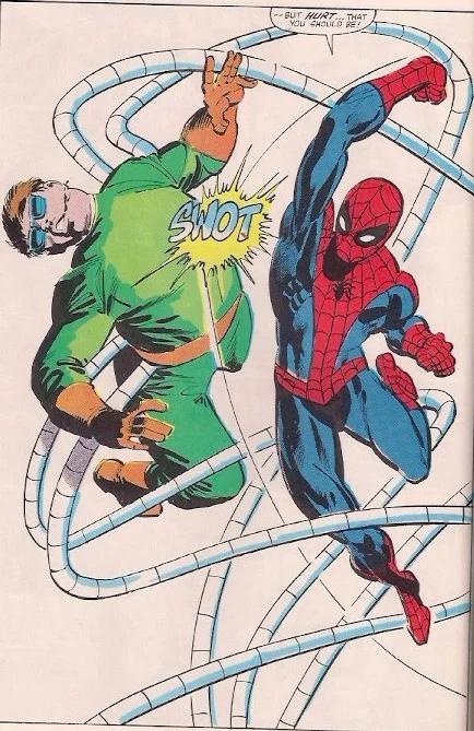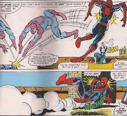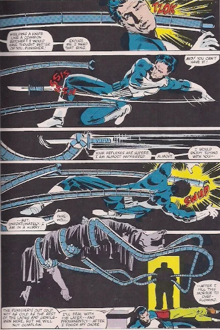 I thought it was interesting how Punisher could easily beat Spider-Man in a one-on-one battle but in an unconventional fight Dr. Octopus made short work of him repeatedly and Spider-Man had to save the day.