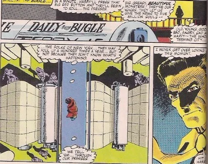 The editors of the The Daily Bugle are putting together the front page of the next day’s paper and deciding which story is going on the front page. J. Jonah Jameson wants another anti-Spider-Man story but Editor “Robbie” Robertson nixes it because circulation drops whenever a story with an anti-Spidey story. They wait and see how a story covered by Ben Urich and Peter Parker develops.