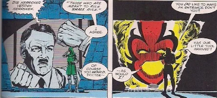 He interrupts Doom (while he is watching newsreels of Hitler) and informs him that he’s given Dilby special powers and he’s already begun conjuring up creatures.
