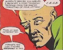 The place is wrecked and he runs into a fallen Wong, who tells he received a message from the doctor, the letters C-B-G-B.