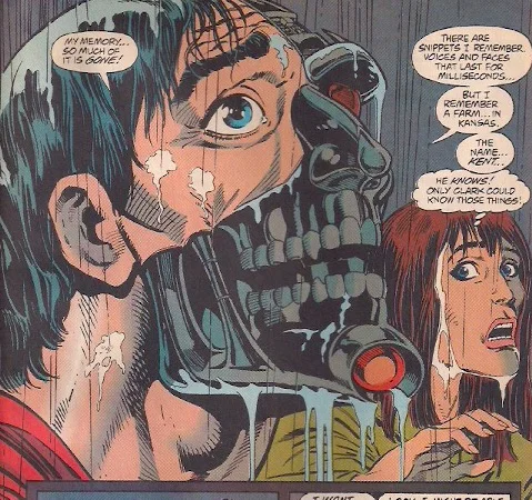 He remembers little bits like a farm in Kansas and that Lois named him. Lois starts to believe. She takes him to Professor Hamilton for tests and learns that the flesh part of the cyborg is Superman.
